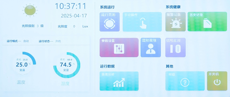 集成保溫潔凈系統(tǒng)、溫恒濕系統(tǒng)、新風(fēng)系統(tǒng)、滅菌系統(tǒng)、精準(zhǔn)氣流組織系統(tǒng),結(jié)合工業(yè)級(jí)傳感網(wǎng)絡(luò)及智能控制系統(tǒng)實(shí)時(shí)監(jiān)測(cè)并調(diào)節(jié)溫度、濕度、CO?濃度、風(fēng)速等參數(shù),確保環(huán)境參數(shù)穩(wěn)定匹配作物生長(zhǎng)需求。